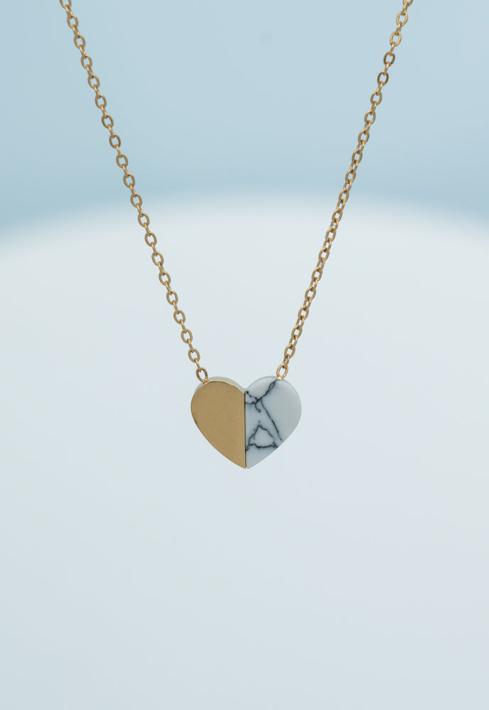 Materials: 14k gold plated and white turquoise howlite heart pendant on a 14K gold plated stainless steel chainSize: 17-19.5 inches